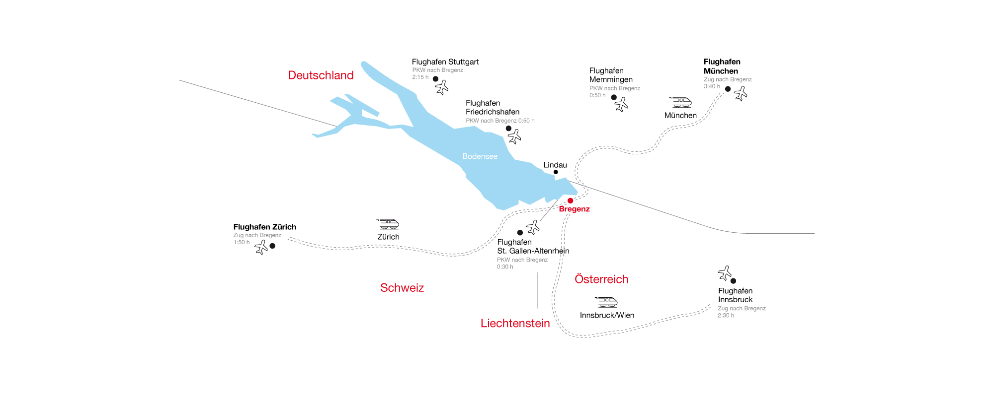 For a time-saving journey, international participants can choose from three airports that are easily accessible from Bregenz by train or shuttle bus.