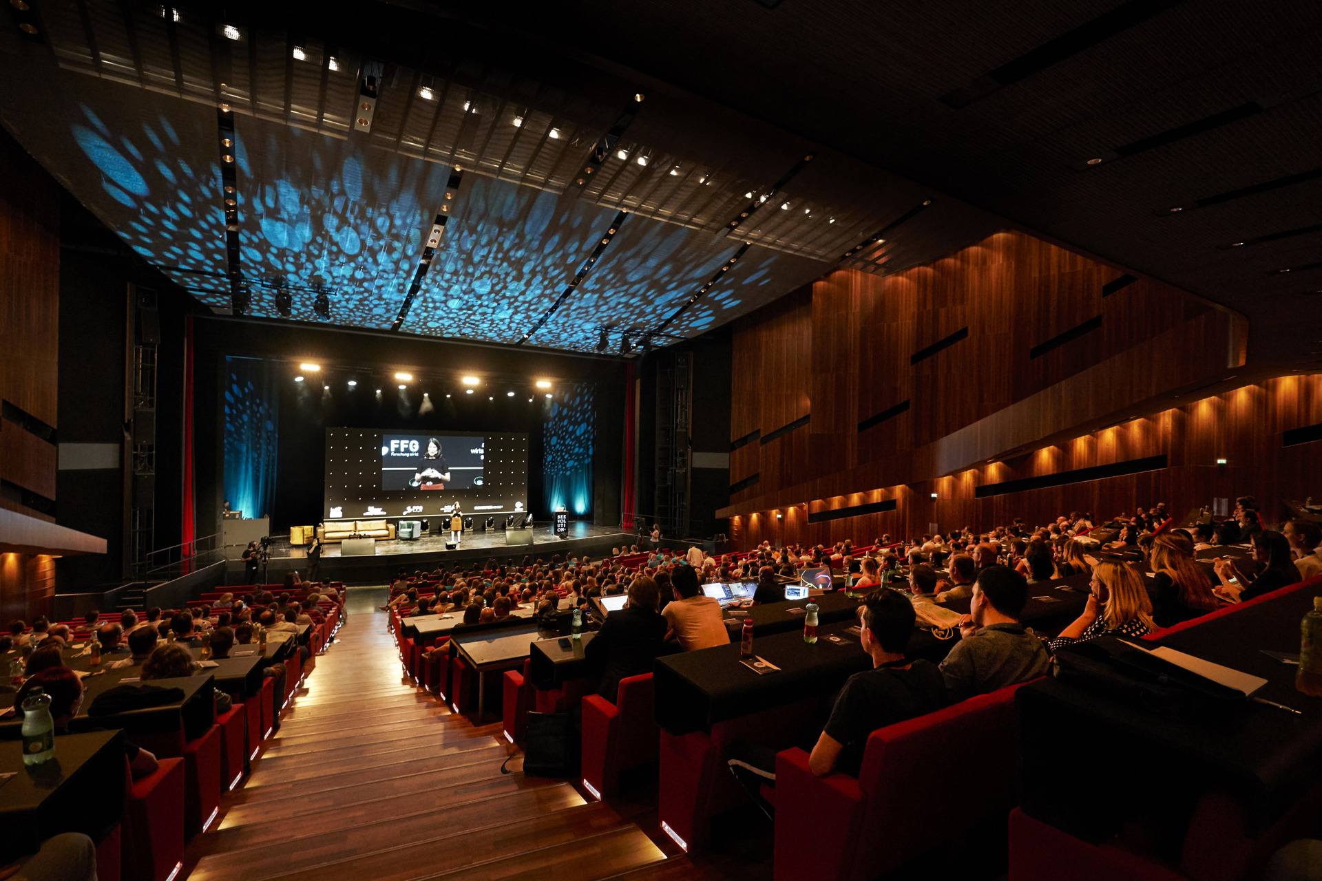 The Festspielhaus Bregenz stands for hi-tech stagecraft and innovative event design, and events in the Großer Saal prove to be particularly impressive. The combination of the main stage, apron stage, backstage area, and side stages with the auditorium makes every event a special experience. That’s because there’s no more inspiring place to meet or celebrate than on the theatre stage.