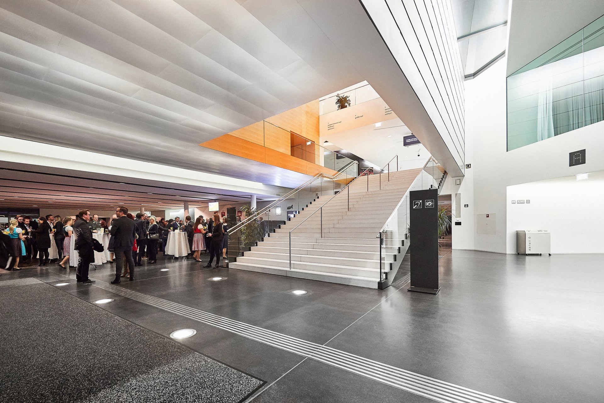 Our bright and spacious foyers provide the perfect setting for accompanying exhibitions at conferences or corporate events, while also serving as welcoming public areas for social and cultural gatherings. The Panorama I and II halls, the Propter Homines room, and the Showroom offer ideal breakout spaces for meetings and conferences. Our experienced event planning team will be happy to explore the available options with you.