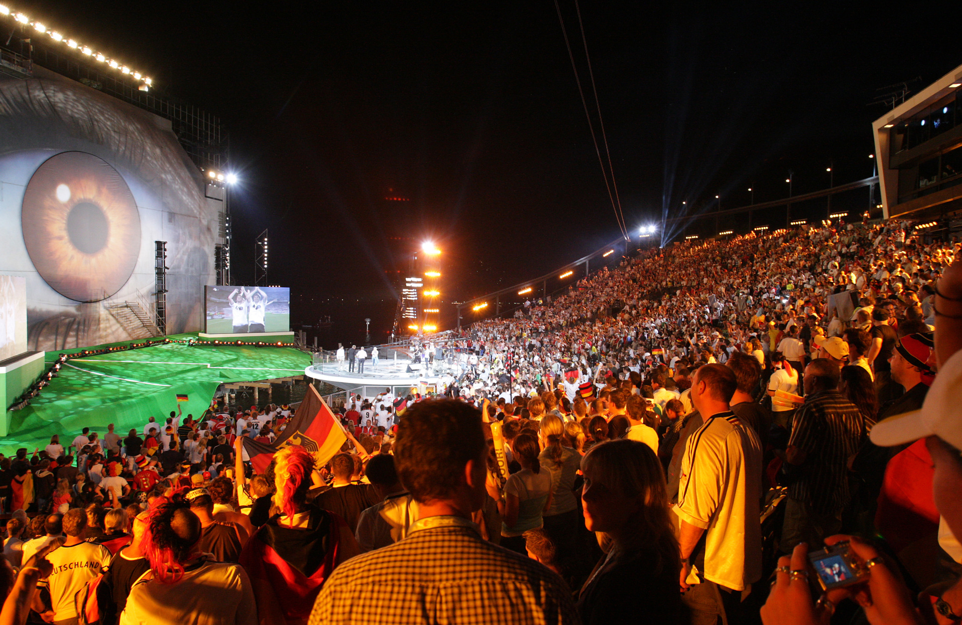 On 10 July, the final of the European football championships will take place in France: the excitement will reach fever pitch and millions of fans will watch the match on television. At the present time, the Kongresskultur Bregenz team are thinking back a lot to the European football championships of 2008 when the lake stage was transformed into a TV studio for live broadcasts and the auditorium became a vast public viewing arena.